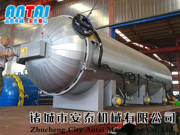 蒸汽由罐底進(jìn)去,在罐底設(shè)置蒸汽進(jìn)口由自動(dòng)閥門(mén)控制,蒸汽擴(kuò)散管豎向在罐底排列,擴(kuò)散管中小口(3mm、4mm、5mm)按一定規(guī)則和角度彌補(bǔ)排列,確保蒸汽進(jìn)入到罐內(nèi)后溫度均勻向四周擴(kuò)散,防止蒸汽擴(kuò)散不均造成的產(chǎn)品質(zhì)量不同。設(shè)定工作程序后,控制系統(tǒng)自動(dòng)進(jìn)行升溫、保溫、硫化等工作,硫化結(jié)束后發(fā)出聲光提示并停止工作。