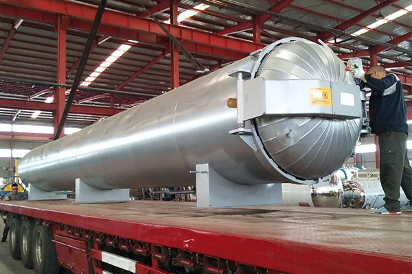 采用外置蒸汽發(fā)生器供給蒸汽,設(shè)定工作程序后,系統(tǒng)自動進(jìn)行硫化工作。罐體內(nèi)部設(shè)置蒸汽擴(kuò)散管,蒸汽通過擴(kuò)散管進(jìn)入罐體后,均勻向四周擴(kuò)散。罐內(nèi)溫度均勻無死角。